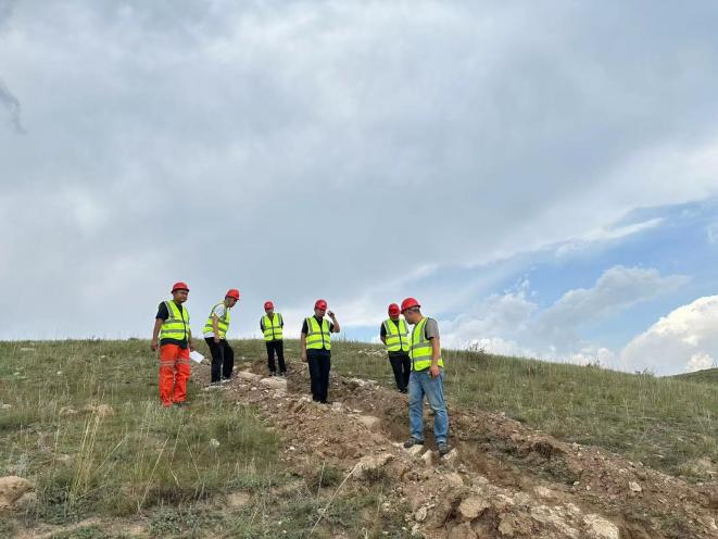 随后,检查组一行抵达施工现场,对钻探、槽探等工程施工进行检查指导,对项目现场管理予以肯定。刘晓理对项目部安全生产工作提出具体要求:一是要把总队安全生产管理体系落到实处,结合项目实际进行分解、落实,及时发现并消除安全隐患;二是注重项目质量管控,将以往多年的灰岩勘探经验与本项目有效结合,确保省级基金价款项目成果质量;三是要发挥好建材队伍多年沉淀的组织、管理及找矿技术优势,持续扩大建材地勘品牌影响力,树立良好口碑。