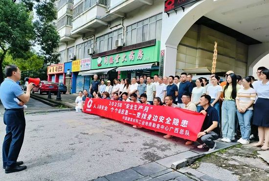 6月6日上午,广西总队举行了以“人人讲安全、个个会应急——查找身边安全隐患”为主题的安全生产月启动仪式。总队党委书记、总队长贺行良,分管安全工作的副总队长付亚春等领导班子成员出席活动并作动员部署,总队职工近80人参加(部分人员在工地未能参与),拉开了全员参与、全域防控的安全生产月活动序幕。