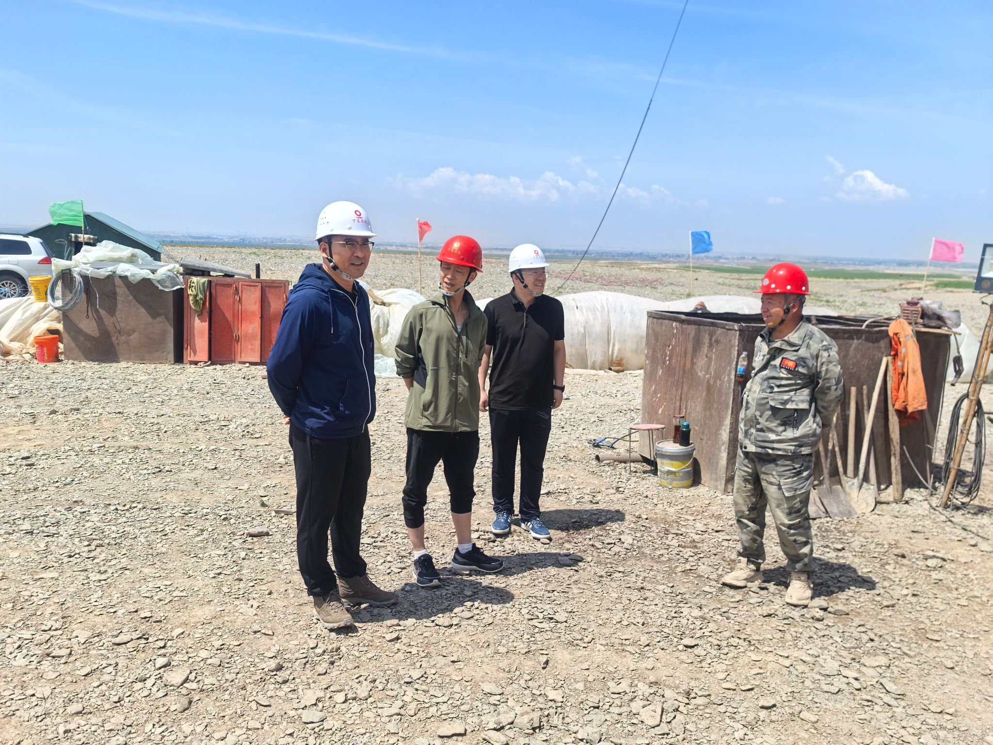 梁利东强调项目人员必须强化责任担当,切实履行安全职责。一是要提高政治站位,强化“红线意识”和“极限思维”。项目全体人员要深刻领悟习近平总书记关于安全生产的重要论述,深入学习贯彻落实集团、地勘中心及宁夏总队2025年安全环保工作会议精神,不折不扣地落实安全生产责任,切实把安全生产记在心上、扛在肩上,把安全生产放在首位、落在实处。二是要充分发挥党组织的带头与榜样力量,做到党建工作与安全生产互促互融。强化安全风险源头的管控,加大事故隐患的排查整治力度,确保宁夏总队安全生产形势持续稳定。三是要加强学习,提高自身专业能力,提升安全管理技能和管理水平。对项目的安全生产运行、重点部位和薄弱环节做到心中有数。要严格值班值守制度,确保有效落实各项安全措施。四是要强化全员安全责任意识和应急处置能力。要将安全责任层层落实到班组、岗位,坚决杜绝各类安全事故的发生,营造安全生产、稳定和谐的氛围。项目上要开展好应急预案演练,务必注重实效,提高员工应急避险意识和安全救生本领。严禁在极端恶劣天气强行组织施工,切实做好一线作业人员的防暑工作。