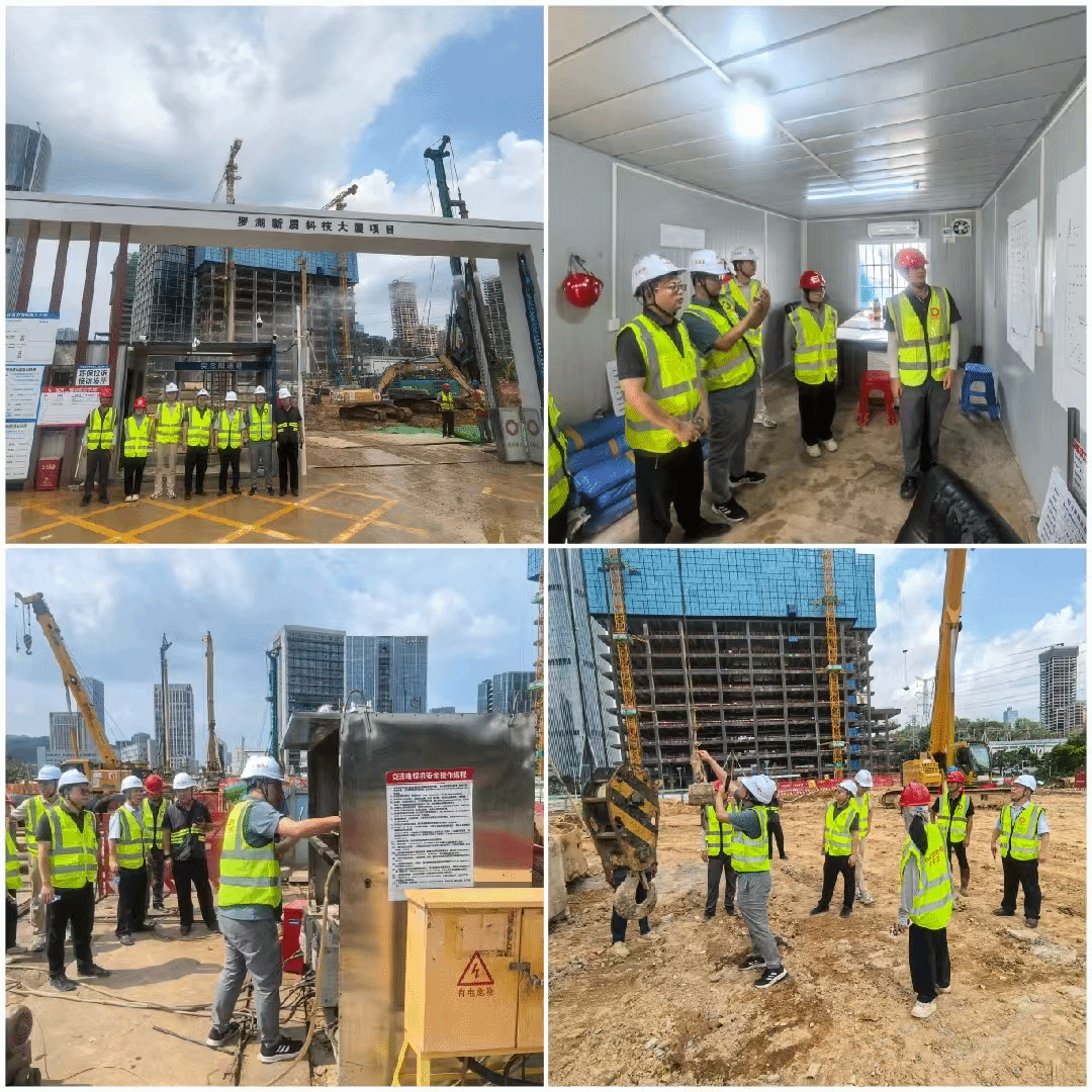 由华磊公司副总经理王星桥、广东总队安环部成员刘君远一行四人组成的检查组,前往地勘院所属南华公司承建的深圳市罗湖区清水河红岗国际创新广场二期项目桩基础、基坑支护及土石方工程现场进行检查。南华公司副总经理陈辉、安环部及项目部相关人员参与检查工作。