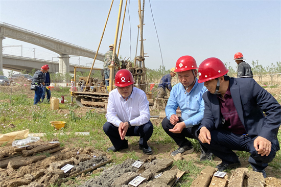 刘海泉一行先后对项目部、钻探现场和土工实验室进行检查和指导,详细了解了项目整体推进情况和项目组成员的工作、生活状况,询问了项目整体工作进度以及下一步工作计划。刘海泉在项目部查阅了钻探日志、钻孔报表等相关工作资料,特别关注了安全和质量交底情况,在钻机施工现场检查了岩芯采取情况和现场编录表,并对质量控制和安全生产提出具体工作要求。安全质量部部长远国义对项目安全生产工作进行了考核,逐项检查了安全生产责任制、安全培训教育、安全生产操作规程、施工现场安全防护等工作内容,对危险源辨识、评价和控制提出指导意见。