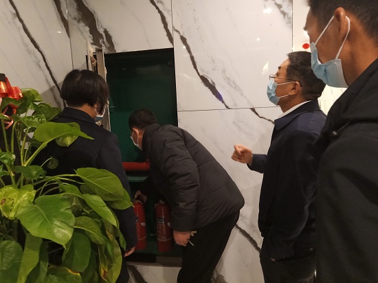 检查小组一行人详细检查了办公区域和租赁铺面、承租酒店等的安全工作情况,围绕消防安全和用电安全,重点检查了消防设备设施是否完好,应急通道是否畅通、灭火器是否在有效期内、用电线路是否老化、实验设备是否规范使用、电动车充电区域是否存在安全隐患等,提醒办公室人员离开后关好电源。对于现场检查发现的问题,能立即整改的,现场要求马上整改,不能立即整改的,要求做好安全防护并限期整改。