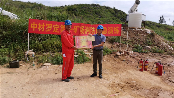 总队所属广州华磊罗定分公司6月10日组织开展的矿场高处坠落事故现场处置应急演练活动,获得中材罗定水泥有限公司高度认可,荣获中材罗定苹塘第一矿场“应急演练”比赛第一名的好成绩。