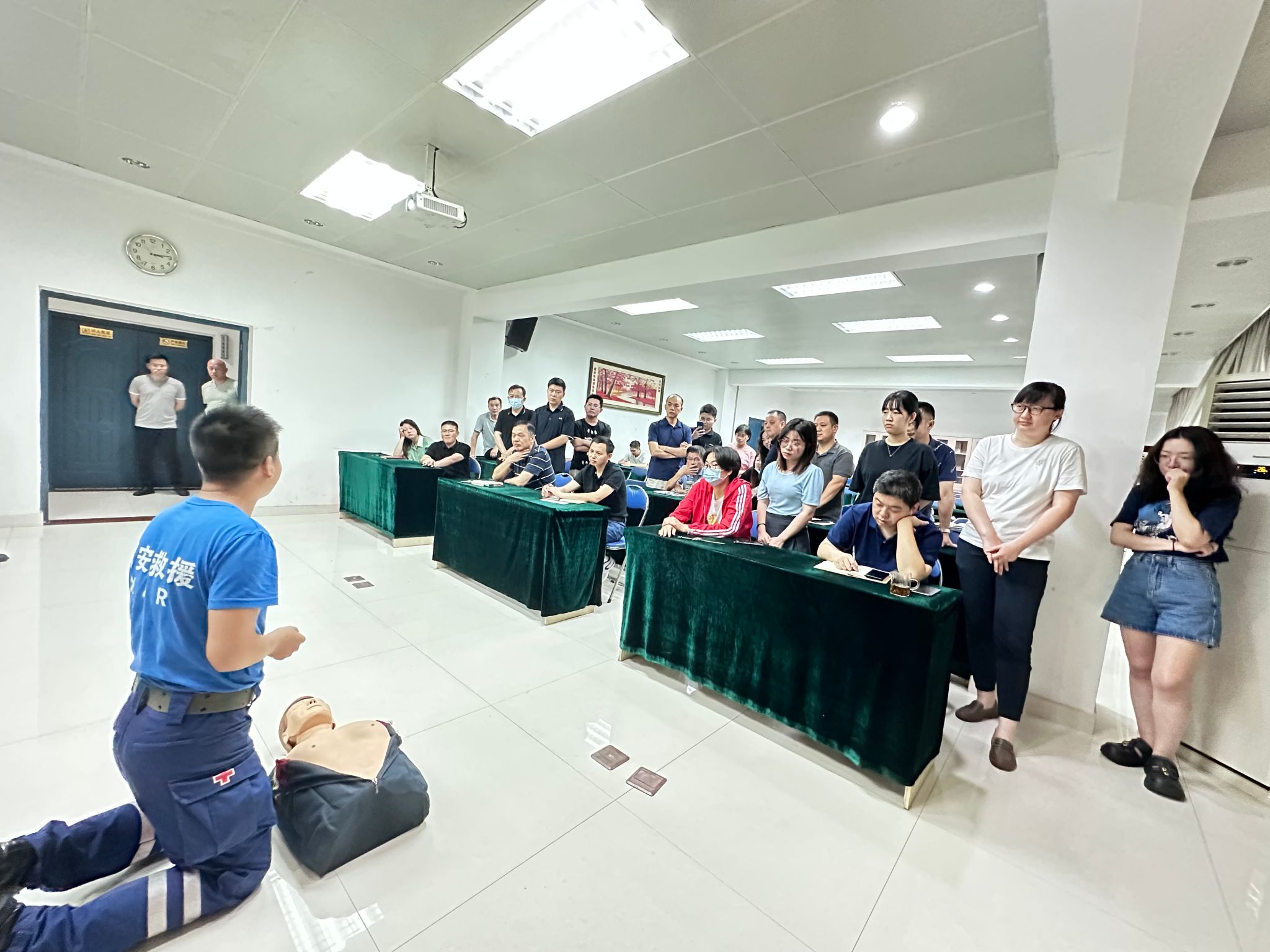 培训会上,张辉教官及其教员团队利用模拟人形道具,现场演示并生动教学了心肺复苏和海姆利克急救法。经培训后职工们跃跃欲试,在模拟人身上练习胸外心脏按压及人工呼吸,在教官的指导下,职工们及时修正急救措施的不足之处,完善并提高应急救援能力。随后,培训会还结合近几年福州乃至全国发生的各类火灾案例,阐述增强消防意识的必要性,告知用火、用电的消防注意事项及相关知识,并对常见灭火器等消防器材的功能及使用方法分步骤进行了较为细致地讲解。