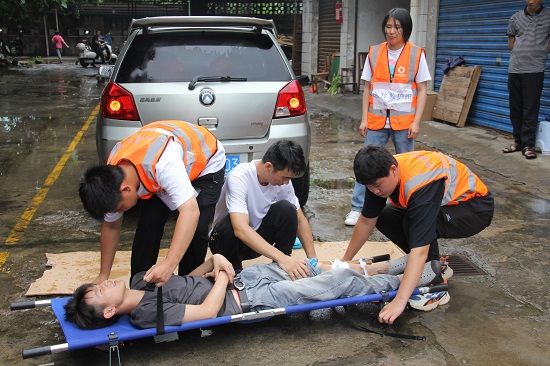培训结束后,总队开展了交通事故应急演练活动。此次演练由党委书记、总队长贺行良亲自指挥,模拟车辆倒车过程中因视野盲区撞倒正在打电话的工人,造成该名工人右腿小腿骨折,大出血。应急指挥部收到事故上报信息后,立即汇报指挥长,指挥长宣布启动车辆事故应急预案,立即组织应急队伍人员(抢险救援组、医疗救护组、通讯联络组、后勤保障组)携带救援工具赶赴事故现场,抢救受伤人员,并拨打急救电话联系急救车。此次演练活动全员配合默契,对事故的处置有条不紊,达到了预期效果。