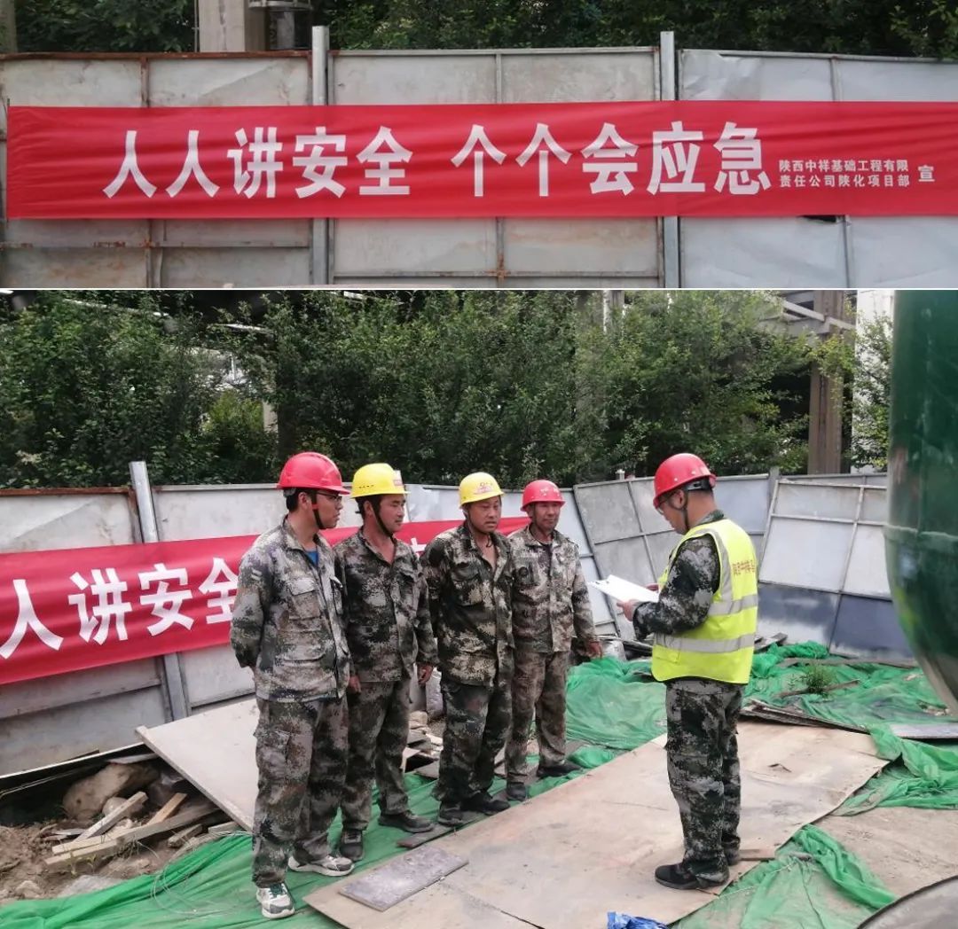 陕化动力分厂新建空压机基础及厂房土建工程项目一是在施工现场悬挂安全标语横幅,提高现场施工人员的安全意识,营造浓厚安全氛围;二是组织开展现场作业人员班前安全教育培训会,熟悉工作环境,提升危险因素和危险源识别能力,增强风险防控能力,确保项目生产和人员安全;三是组织项目人员收看“十大逃生演练科普”视频,学习应对突发事件本领和逃生技能,进一步提高安全意识和应急处置能力,深入领会“人人讲安全 个个会应急”的主题内涵。