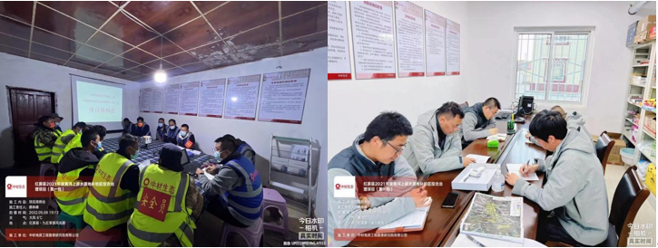 项目初期准备阶段,项目部制定了精密的施工计划,从项目管理、安全文明施工、疫情防控等方面制定了多项举措;项目伊始施工员冒着严寒、踏着齐腰深的积雪、克服高原反应,早出晚归进行定点测量的外业工作。为了节约时间午饭只能在野外吃点干粮、累了就坐在雪地里短暂休息;越野车辆到达不了的区域就负重30多公斤的器材手脚并用的爬上去,一不小心掉进雪窟窿里,周围的人员便冲过来七手八脚的将这个“雪人”拉拽出来;短短的几天时间由于上火、干渴大家的嘴唇都变紫变黑,脸上开始一层一层的蜕皮;虽然配备了防雨的鞋子衣服但晚上火炉边还是摆满了湿透的鞋袜衣服。这样的日子虽然疲惫但大家脸上总是洋溢着灿烂的笑容和一股顽强的倔强。
