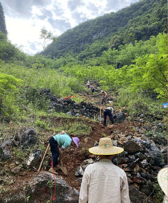 6月5日,我与财务部同事出发到百色碳酸钙资源勘查项目部,进行了为期一周的实践锻炼。我们的项目部租用了德保县隆桑镇巴厄村的民房,塔陇山矿区石灰岩矿详查、大雅矿区方解石矿详查、驮楼矿区方解石矿详查3个详查项目组以及石英找矿项目的人员都聚居在此。大家白天完成既定的野外工作,晚上趁着晚饭时间探讨工作,制定第二天的找矿路线及工作计划。