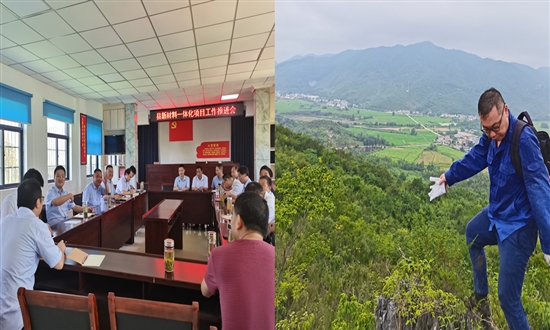 八月的皖南,正值盛夏,酷暑难耐,但为了接好这“第一棒”,总队领导多次作出指示,要求该项目组务必提高思想认识,紧抓工期,有序推进工作。项目组成员斗志高昂,不惧高温,不畏险阻,在总队党委指导下,第一时间成立党员突击队,设立党员先锋岗,充分发挥项目组党员同志先锋模范作用,于到达东至县翌日,便进驻项目现场,全面展开地质测量、勘探线测量、钻探、槽探等工作。由于项目时间紧、任务重,项目组组织了8台钻机进行勘探工作,为高效推进项目进度提供了硬件保障。
