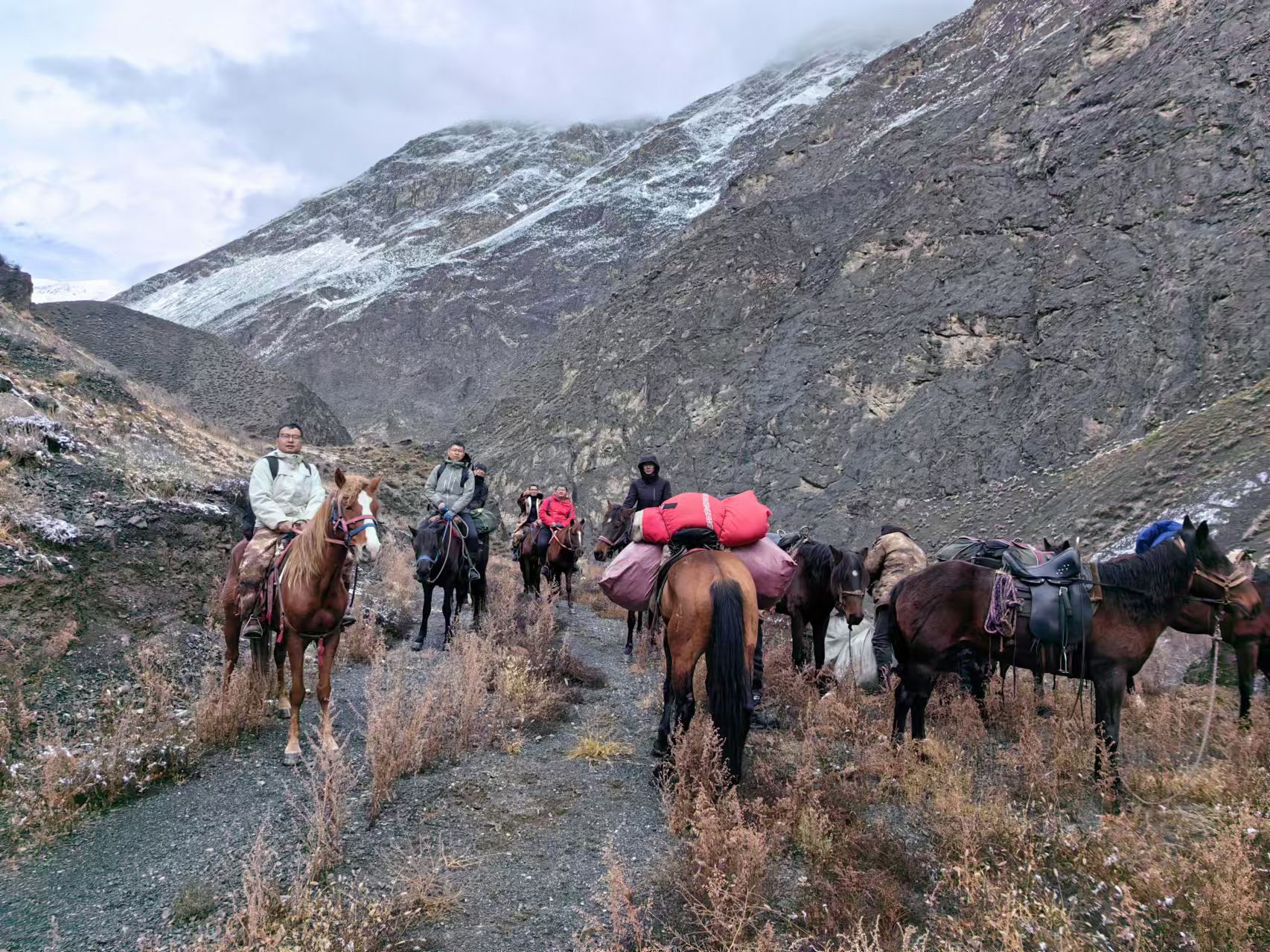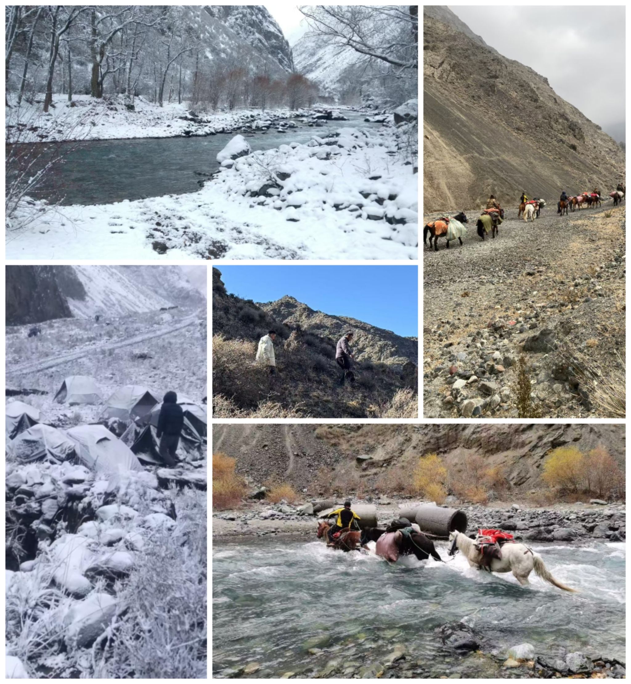 10月16日至23日,在中交规划设计院带领下,项目组5名成员顶风冒雪,深入北天山著名的老虎口至三岔河无人区路段,经历了马驮人爬的艰辛跋涉,遭遇了与狼熊插肩而过的危险时刻,忍受了昼夜温差高达40度的极端天气,历时7天6夜完成了无人区踏勘作业,获得了宝贵的现场及外业调查资料,为下一步开展勘察工作奠定了坚实基础。